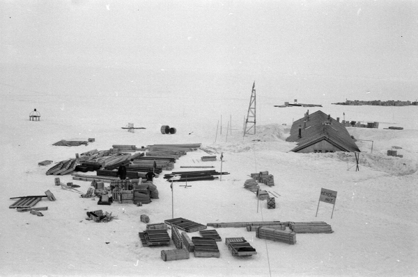 We’ve blogged on Halley Bay before, so here’s a quick recap: the International Council of Scientific Unions arranged a global research effort known as the International Geophysical Year (IGY) from 1957 to 1958, to coincide with a period of maximum solar activity. The Royal Society’s contribution was an expedition to establish a research station in the Antarctic. An advance party was sent out in 1956 to set up the base, with the main group following in January 1957.